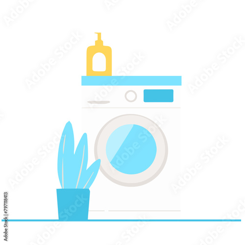 Vector illustration of bath foam bottle and bathtub with soap bubbles. Plastic bath foam bottle packaging with label realistic mock up. 3d bath foam poster, banner, flyer design template.