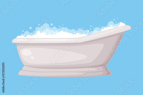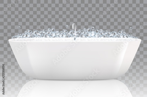 Bathtub with soap bubbles. Vector realistic illustration isolated on transparent background.