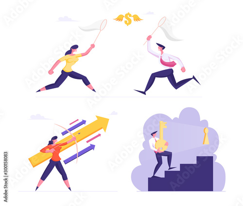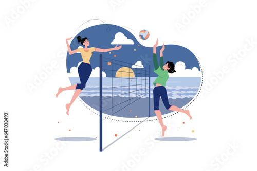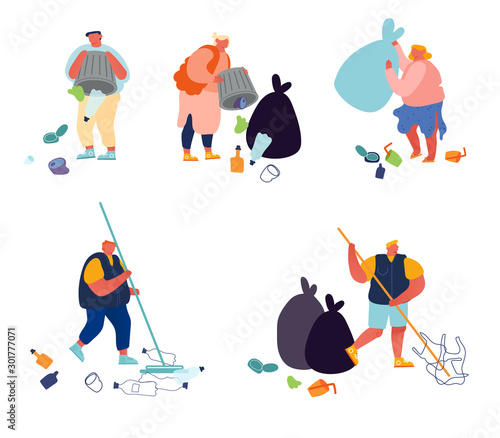 People cooking meat, sausages on barbeque grill, eating and having fun, vector illustration. Professional catering service composition for web banner, website page etc.