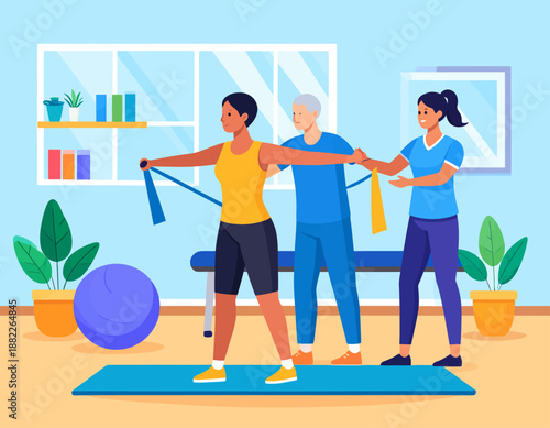 Bbq party with friends, flat vector illustration. People cooking meat, sausages on grill, drinking beer and having fun. Outdoor barbecue picnic, summer leisure activity.