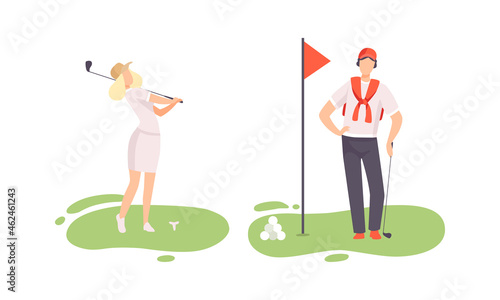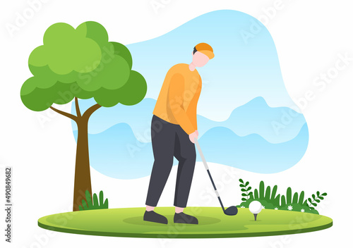 Vector illustration of man with frisbee plastic disk. Beach games concept design element in flat style.