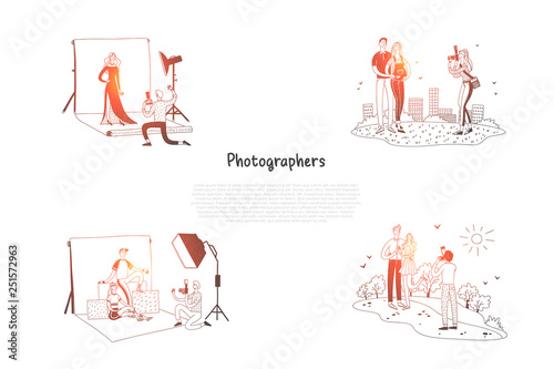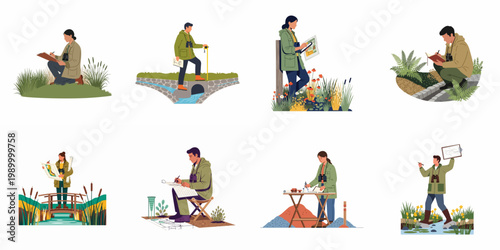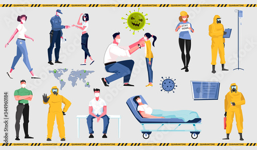 Beach lifeguard character flat vector illustration. Water rescue duty. Rescuer man at work swimming on boat, saving woman and male person life, holding first aid kit or buoy scene