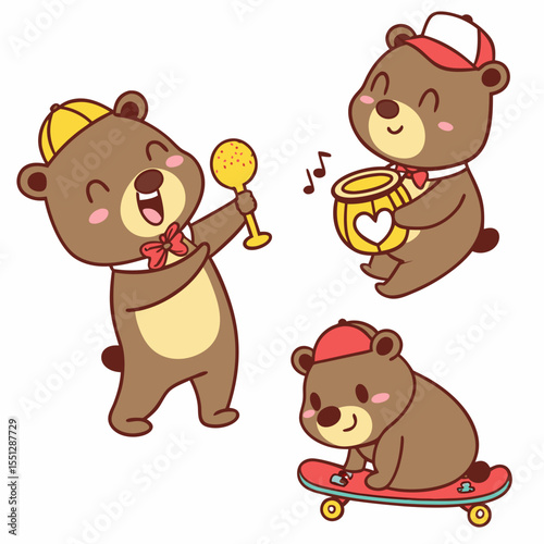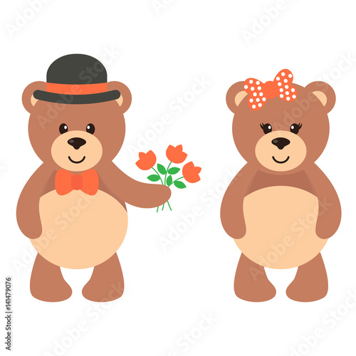 Bear love vector. Cute teddy licking honey. Animal couple icon for valentine greeting card design. Funny loving character illustration isolated on white background