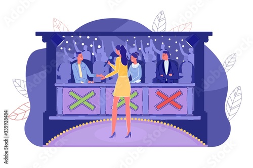 Beautiful ballerina dancing on stage. Vector illustration in paper art craft style. Classic ballet dancer silhouettes. Ballet performance.