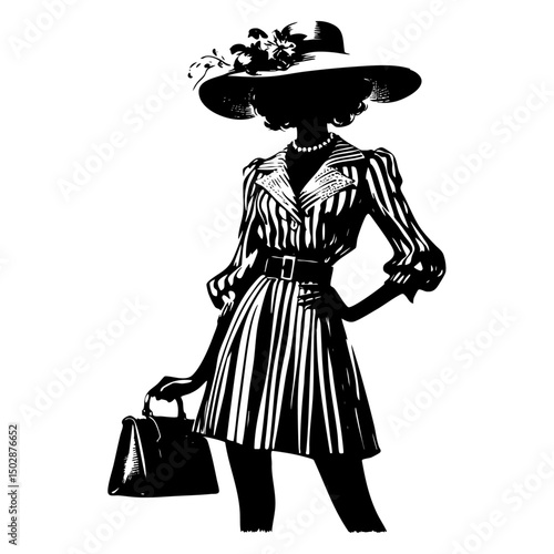 Beautiful woman in dress stay next to car. Comic vector illustration in pop art retro style. Speech bubble.