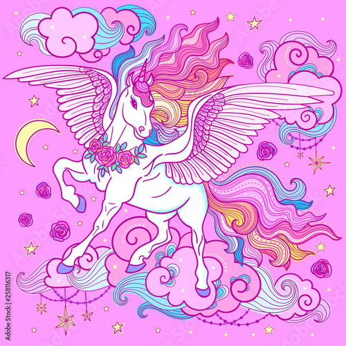 Beautiful girl with long wavy hair. Vector illustration in modern paper art style. Beauty and hair salon logo, business card design template.