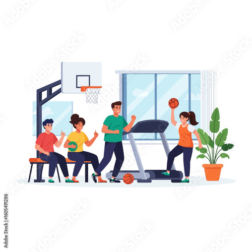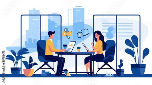 Beauty salon. One girl doing manicure to another one, flat vector illustration. Two happy women, best friends talking, drinking coffee. Nail treatment, hand care. Female friendship.