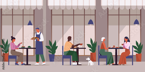 Beauty salon interior vector concept banners. Hair style design studio. Women in haircut atelier. Illustration in flat cartoon style.