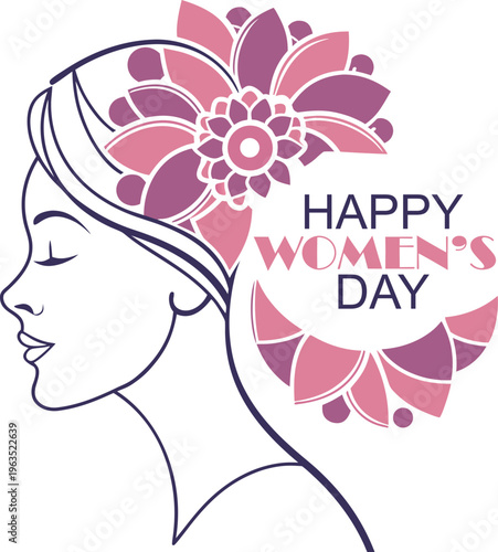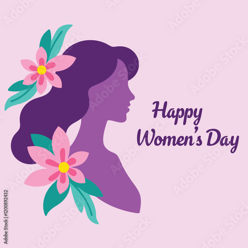 Woman with beautiful wavy hair. Vector illustration in modern paper art style. Beauty salon business card design template.