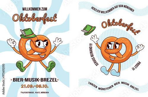 Beer landing page template. Vector flat style design concept for beer festival, party, Oktoberfest website and mobile site development. Beer with grilled bavarian sausage and pretzel.