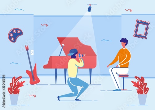 Group of people drinking beer and watching football match in sport bar, vector flat illustration. Beer pub visitors soccer fans supporting their favorite team and having fun.