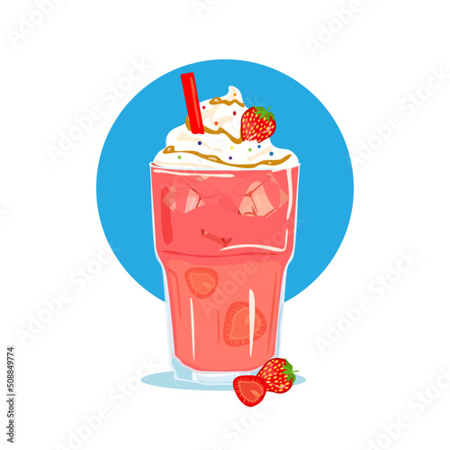 Belgian waffles with strawberry jam, flat vector illustration. Sweet tasty dessert. Breakfast menu.