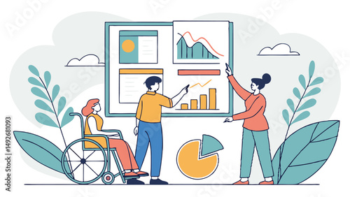 Disabled man in wheelchair watching himself with gold trophy cup in the mirror, flat vector illustration. Believe in yourself and change your life concept.