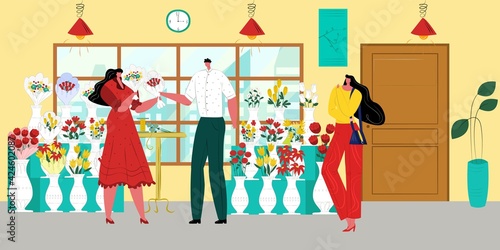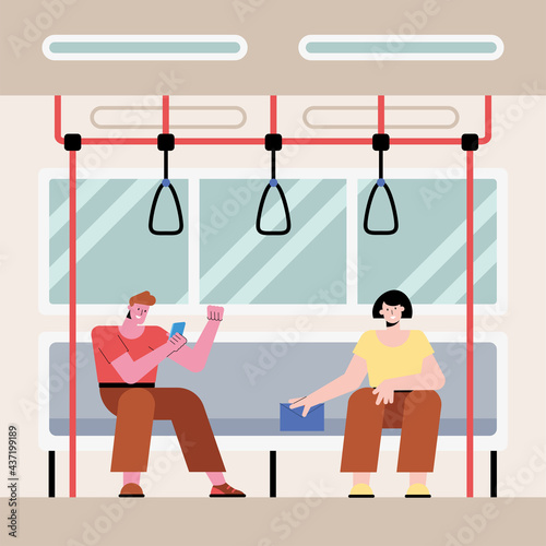 Bench press using a barbell. Man working out in a gym. Healthy lifestyle concept vector illustration in flat style. Fitness and sport equipment.