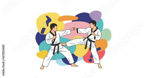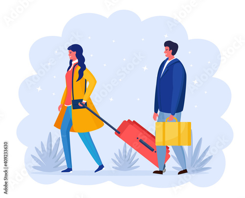 Biathlon concept vector illustration. Winter sports, cross-country skiing with target shooting, skiers male and female flat style design element.