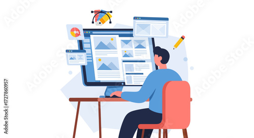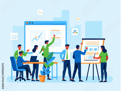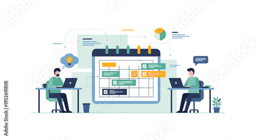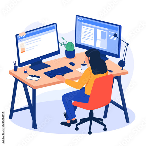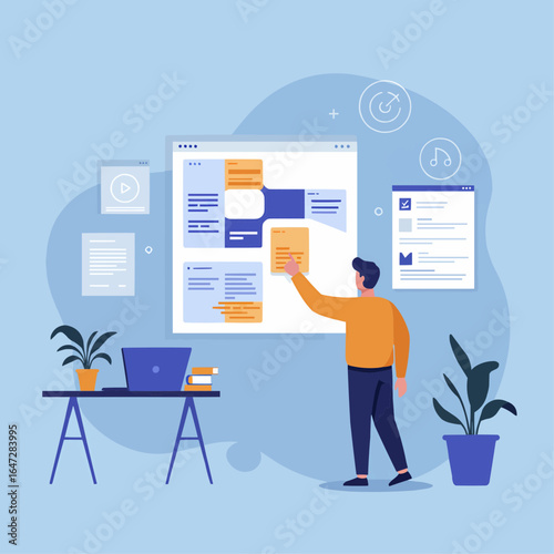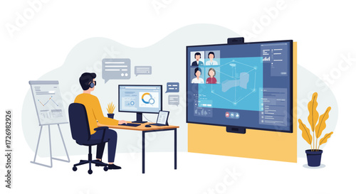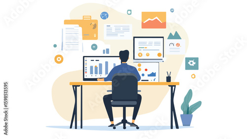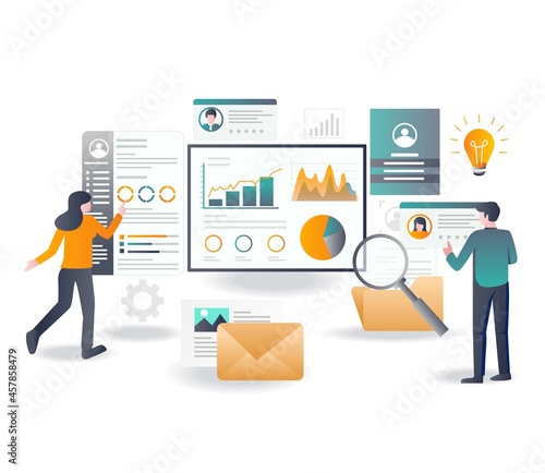 Big data technology for digital profile vector illustration. Big data analysis and forecasting in digital marketing concept with bar pie charts, diagrams, character for web banner, website page, etc.