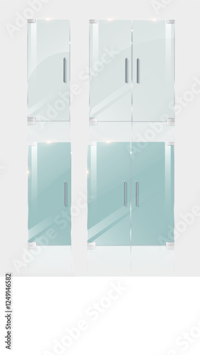 White cardboard package box with transparent plastic window blank 3d mockup vector design. Big paper pack template different shape isolated set