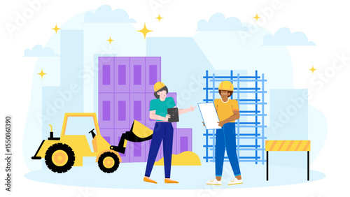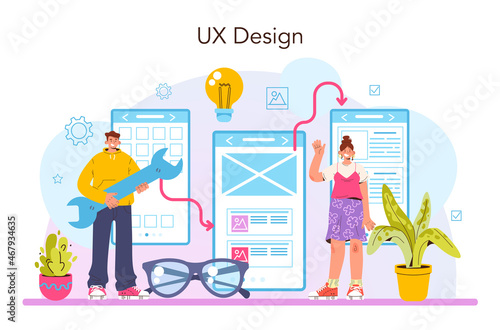 Bike sharing, vector flat style design illustration. Man and woman renting bicycles, finding docking station using mobile app. Rental bicycle service concept for web banner, website page, etc.