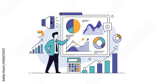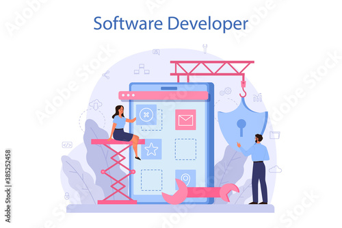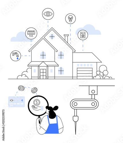 Biology science. Vector illustration of laboratory assistant doing biological experiment at science lab using modern technology. Scientific research process concept for web banner, website page, etc.