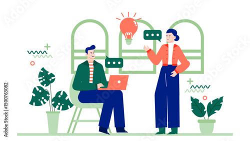 Vector illustration of scientist female holding plant. Biological lab interior with laboratory glassware and equipment. Biologist concept flat style design element.