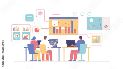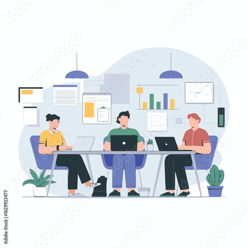 Biology concept vector illustration in flat style. Biological laboratory interior. Biologists carrying out research using laboratory glassware and equipment.