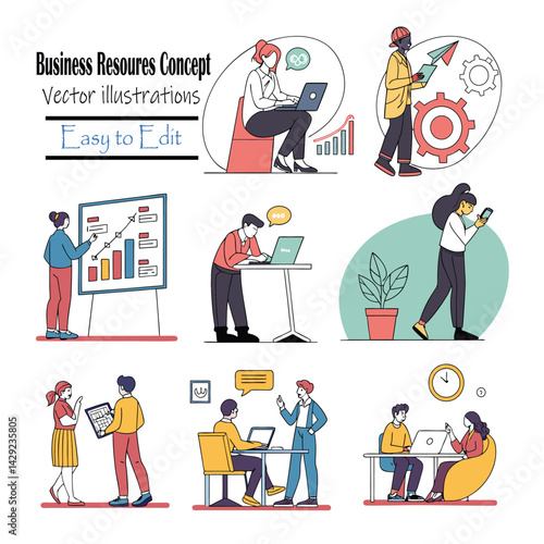 Biotech typography banner template, vector flat illustration. Scientists testing DNA, examining cell cultures and splicing genes. Biotechnology, genetic engineering, genetic modification technology.