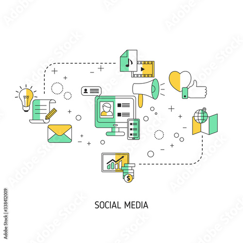 Bitcoin concept vector illustration. Thin line flat style design elements, symbols, icons for web banners and printed materials.