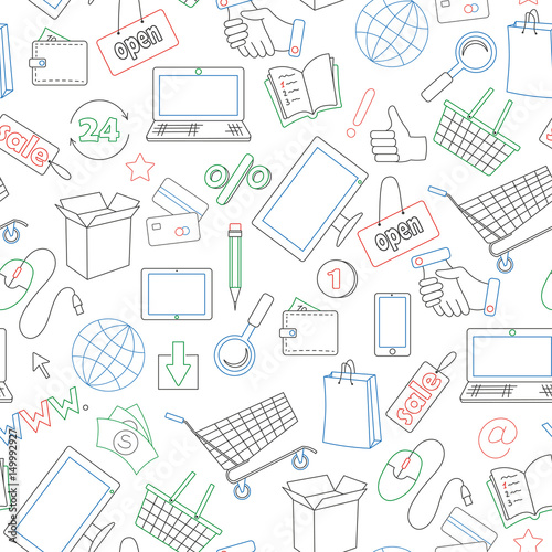 Bitcoin mining seamless pattern. Vector modern thin line flat style design with cryptocurrency mining icons and symbols.