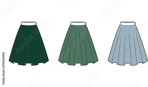 Black and white fluffy skirt mockup set, vector illustration isolated on transparent background. Women apparel, ladies clothing and fashion.