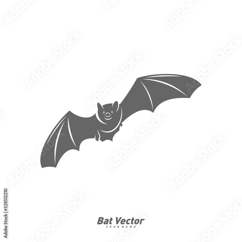 Black bat flying vector. Spooky black animal creature character, scary night monster isolated on white background