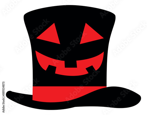 Black cylinder top hat vector. Halloween headdress with scary creepy death head bone decoration and red ribbon icon isolated on white background