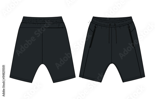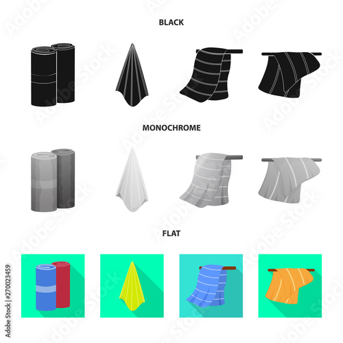 Black fluttering curtain set, vector illustration isolated on white background. Realistic lightweight curtains, window coverings for interior decoration.