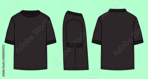 Black spa clothing mockup set, vector illustration isolated on white background. Terry towels, fluffy bathrobe and slippers. Realistic spa apparel and accessories.