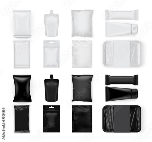 Black, white and red pencil skirt mockup set, vector illustration isolated on transparent background. Elegant slim fitting skirts. Women apparel, ladies clothing and fashion.
