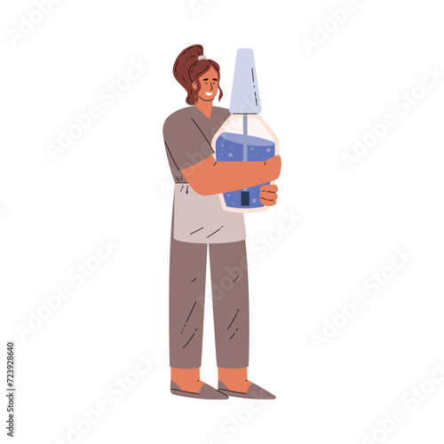 Blacksmith character wearing in apron standing with hammer on belt vector illustration. Foundry workshop worker isolated on white background