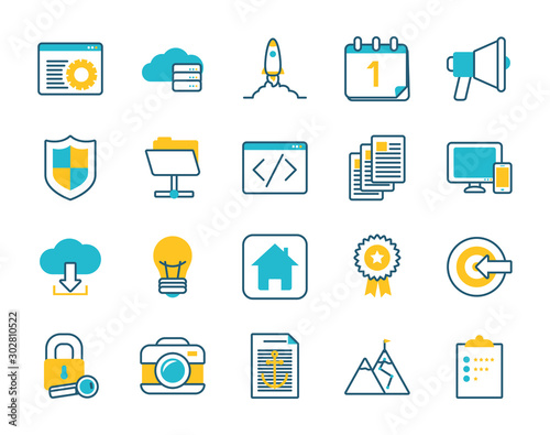 Blockchain technology seamless pattern, vector modern thin line flat design.