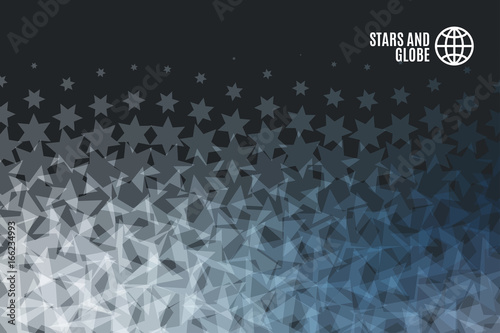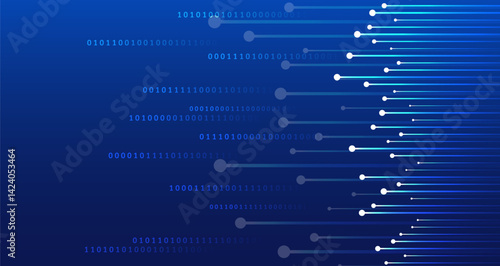 Vector polygonal art style iron chains. Low poly wireframe mesh with scattered particles and light effects on dark blue background. Blockchain technology poster banner design template with copy space.