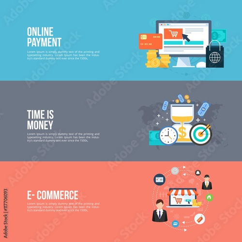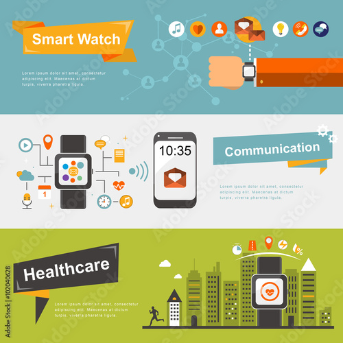 Vector set of horizontal banners with Blockchain, Profit, Innovations concept modern thin line flat design elements, web templates.