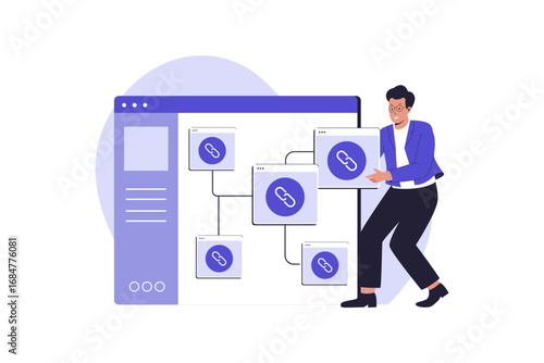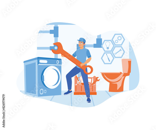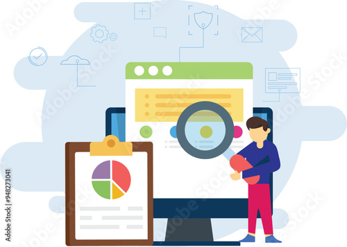 3D printing process vector illustration. Blue 3D printer, futuristic blue touch user interface hud, engineer. Future technology ip dashboard, engineering and prototyping industry concept for web etc.