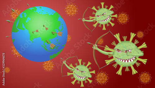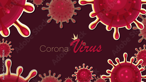 Blue virus cells or bacteria on background. Corona virus vector illustration