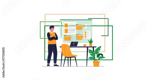 Book production concept vector flat style design illustration. Big open book and tiny characters team of people involved in publishing process. Publishing house or company services.