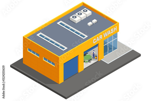 Booth selling train ticket isometric vector. Metro station kiosk 3d for underground travel pass card purchase isolated on white background