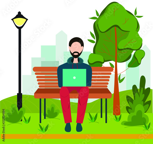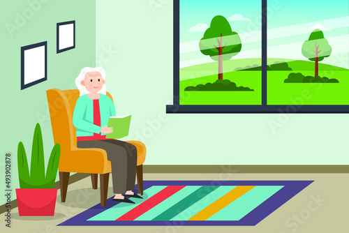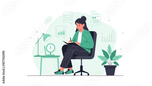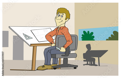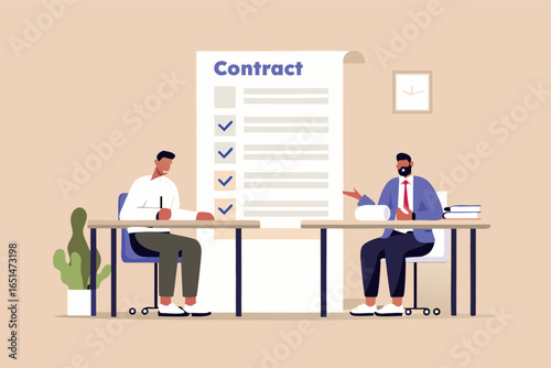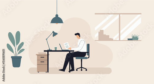 Vector illustration of businessman in private office. Modern office interior. Boss concept design element in flat style.