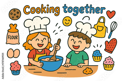 Boy looking at refrigerator with unhealthy junk fast food flat cartoon vector illustration. Little son feeling hungry and searching for food inside fridge