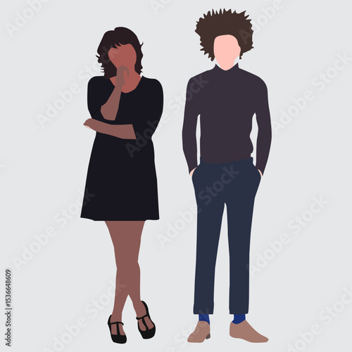 Boyfriend shooting girlfriend using mobile camera vector icon isolated on white background