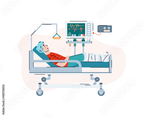 Mechanical ventilation concept vector illustration. First aid in hospital for man suffering from allergies or asthma. Breathing machine flat style design element.