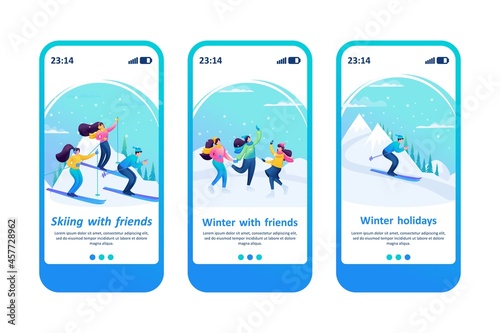 Bride morning preparation for wedding ceremony, party celebration. Bridal routine. Mobile app screens. Vector banner template for website and mobile development. Web site and UI design illustration.