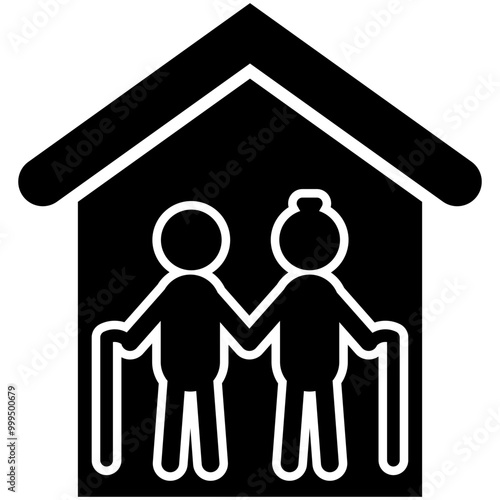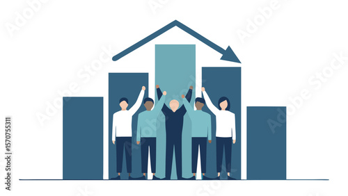 House building with business people silhouettes. Broker, realtor and customer handshake, vector illustration in paper art style. Business partners shaking hands. Real estate negotiations, good deal.
