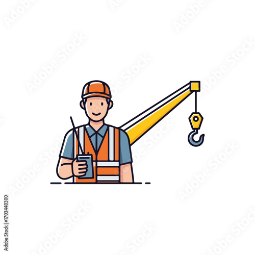 Builder working with hammer vector icon isolated on white background. Labor character, repair man or carpenter person
