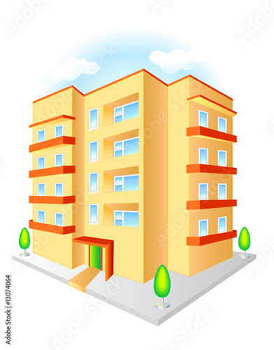 Building work finish vector. New house icon. Skyscraper, apartment real estate isolated on white background